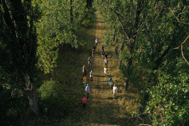 În spațiul tehnic, adică o construcție ce adăpostește un atelier de tâmplărie, zgomotos altădată, dar tăcut acum, Luminița Radu, grafician și profesor la Liceul de artă din Bacău, așterne pe hârtie umbrele de la Tescani, cu uimire călcate în picioare de cei care își plimbă liniștea prin parc. În foșnet de hârtie, desenele sale ne arată forme și culori, la o singură suflare de vânt.