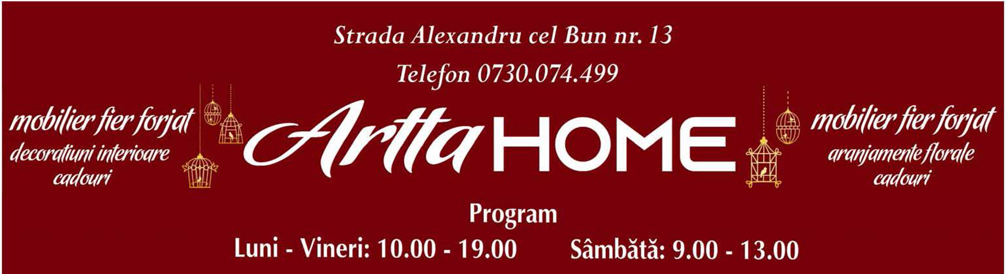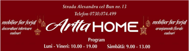 Chiar dacă suntem, încă, în anotimpul cald, la magazinul de fier forjat de lângă Insula de Agrement putem descoperi o sumedenie de articole pentru perioada de Crăciun. Un alt element, de această dată pentru orice sezon, este un grătar multifuncțional, cu scripete mobil, la care se poate atașa și ceaun. La partea de decorațiuni, un loc aparte îl ocupă…florile. Apoi sunt remarcabile ramele foto sau seturile de pahare din cristal, pudrate cu aur. Pe lângă toate acestea, la Artta HOME puteti găsi și perne, lenjerii de pat, perdele și draperii, produsele respective contribuind la complexitatea decorațiunilor pentru camere. Și aceste produse vin în mare majoritate din import, dar sunt multe situații în care se aduc doar materialele iar croiurile se execută la noi (în București și la Brașov) pentru a avea dimensiunile ideale pentru modelele din magazin.