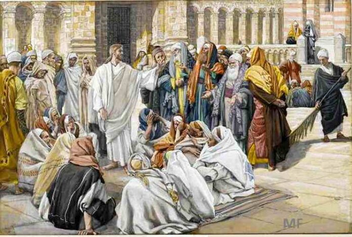 Textul evanghelic din duminica ce urmează ne vorbește despre reprezentanţii aristocraţiei sacerdotale din Ierusalim care, referindu-se la principiul revelaţiei vechi, nu acceptau doctrina învierii morţilor, considerând-o ca o inovaţie. Tot ceea ce îi spun ei lui Isus nu are nimic de a face cu o întrebare justă, care să presupună şi un răspuns, ci este mai degrabă o sfidare.
