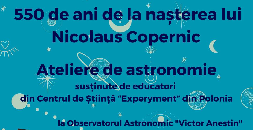 Complexul Muzeal de Ştiinţele Naturii „Ion Borcea” Bacău organizează, joi, 2 noiembrie 2023, în intervalul orar 10.00-14.00, la subunitatea Observatorul Astronomic „Victor Anestin”, cu sediul din strada Ion Ghelu Destelnica, nr. 8,o serie de ateliere de astronomie, cu ocazia sărbătoririi a 550 de ani de la nașterea marelui astronom polonez Nicolaus Copernic.