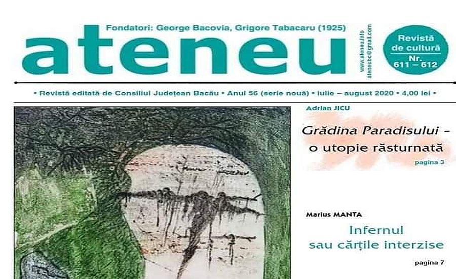 Numărul dublu (iulie-august) al revistei „Ateneu” poate fi citit deja pe site, în format pdf., însă poate fi procurată și din rețeaua de distribuție a SC „Deșteptarea” SA. Cele 32 de pagini cuprind cronici literare, recenzii, eseuri, poezie, proză, teatru, studii de filozofie și pedagogie, portrete literare etc.