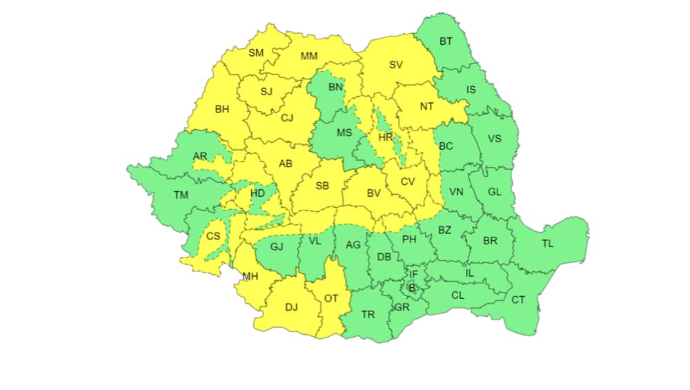 Administrația Națională de Meteorologie a emis o atenționare meteorologică de vreme rea, valabilă în perioada următoare: