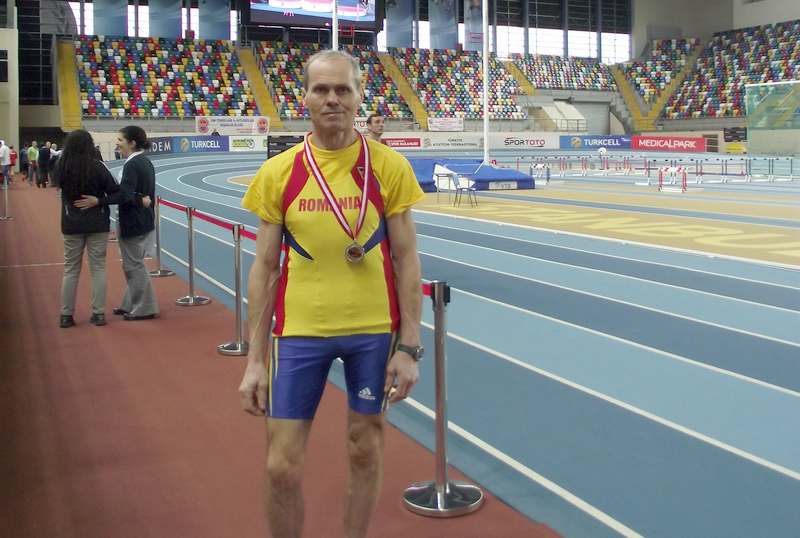 In nici trei ore si-a pus la gât bronzul la 800 m (2.52.46 min.) si argintul la 3000 m. (12.47.39), reconfirmând astfel locul trei obtinut in proba de 3000 m, luna trecuta, la Balcaniada Indoor pentru Veterani de la Istanbul.