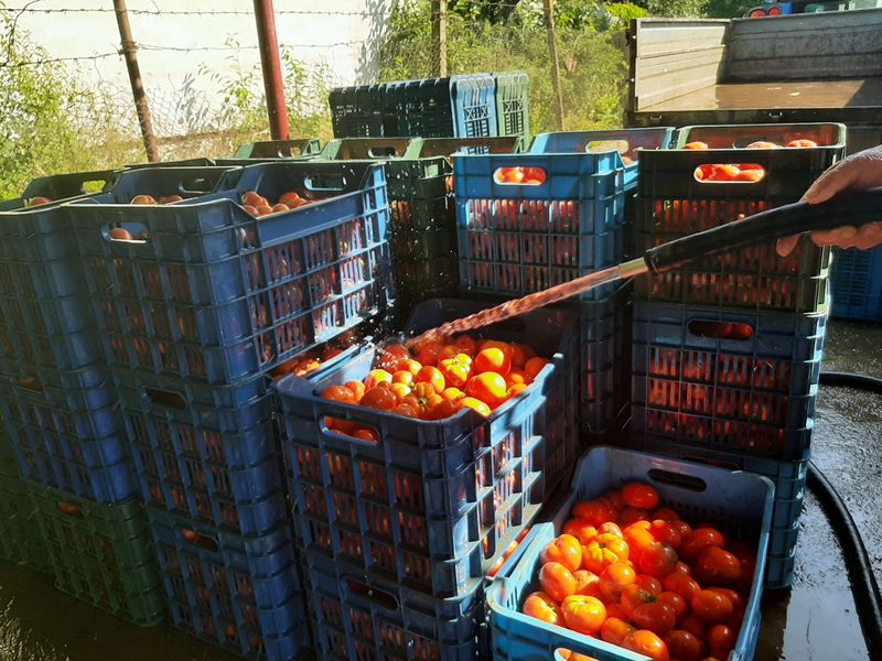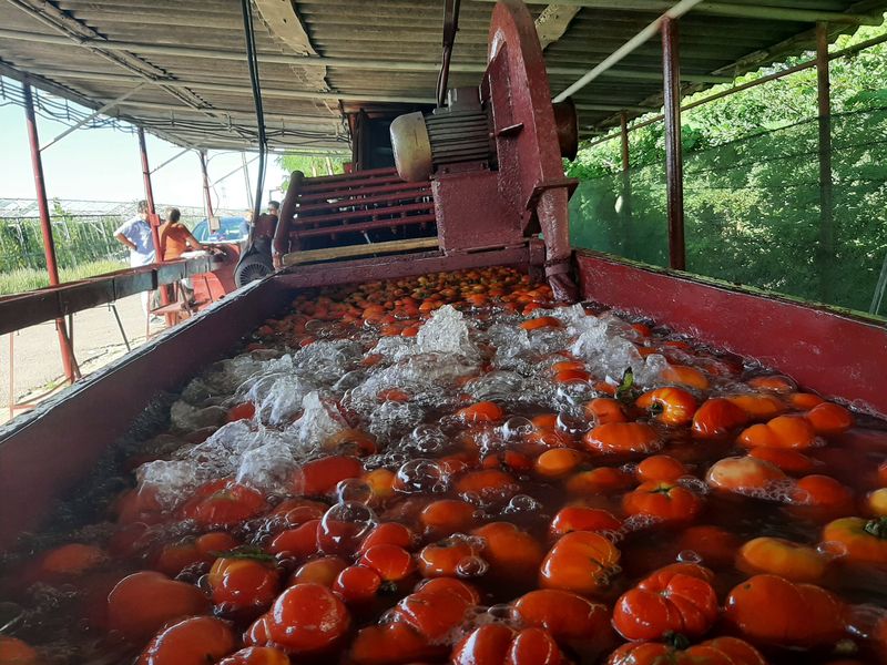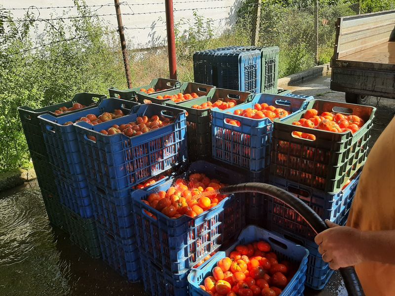 Producția de tomate pentru suc provine din culturile de câmp înființate pe o parte din zecile de hectare ale Stațiunii. Cu toate că a fost un an dificil pentru tomate, atât din cauza temperaturilor scăzute, de la începutul primăverii, dar și a ploilor din luna iulie, recolta a fost mai mult decât mulțumitoare. „Destinația tomatelor este extragerea semințelor, aceasta fiind principala noastră activitate, alături de cercetarea în legumicultură. Secundar, avem producerea sucului de roșii, pe care-l valorificăm către populație, pentru că ar fi păcat să-l aruncăm”, explică Marian Brezeanu, directorul Staţiunii de Cercetare şi Dezvoltare pentru Producţie Legumicolă Bacău.
