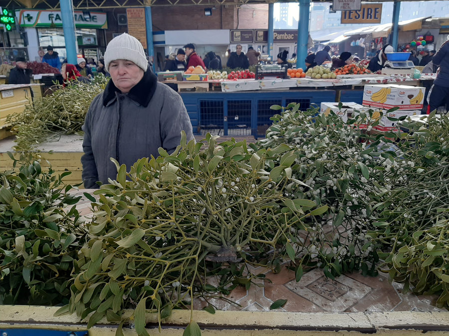 „E crescut pe măr. Ăsta e bun de făcut ceai, pentru cine e bolnav. Cele de pe stejar sau salcâm sunt toxice. Puteți să-l agățați și de lustră, de Anul Nou. Aduce noroc”, mă consiliază femeia. Le urez precupețelor „Sănătate!” și „Sărbători binecuvântate!”, apoi, încerc să mă strecor prin forfota din piață. Până la urmă reușesc să ajung la ieșire, lăsându-i în urmă pe semenii „uituci”, trimiși de gospodine să le aducă bidonul de borș, legătura de pătrunjel sau mai știu eu ce ingredient care să le ajute să termine „piesa” din meniul de Revelion.