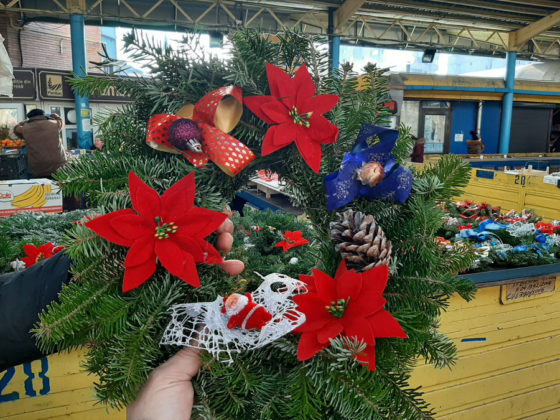 „Nu am vândut nimic, matale ești primul care cumpără de la mine. Dacă oi apuca să vând, mănânc și eu o sarma. Dacă nu… Crede-mă, am cinci copii”, îmi strecoară iute femeia, cu teama ca nu cumva să-și piardă și singurul client care s-a oprit la taraba ei. Cumpăr una și dau să plec. O altă femeie mă îndeamnă să-i cumpăr din „muntele verde” de vâsc scos pe tarabă.