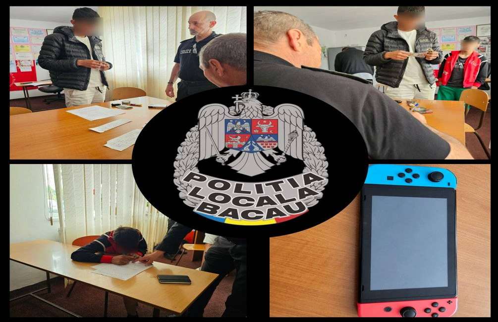În urma verificărilor efectuate, s-a constatat că cei doi tineri, cu vârste de 14 și 21 de ani, au sustras un rucsac lăsat în vestiarul de depozitare al unui supermarket situat pe strada Mioriței. Din rucsac, aceștia au luat consola de jocuri pentru a o valorifica, abandonând restul bunurilor în preajma supermarketului.