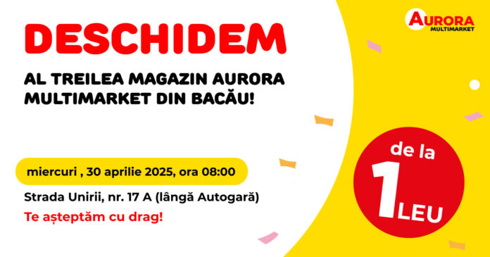 Aurora Multimarket își extinde prezența în Bacău! Miercuri, 30 aprilie, ora 08:00, deschidem oficial ușile celui de-al treilea magazin, un loc plin de oferte imbatabile și surprize pentru întreaga familie!