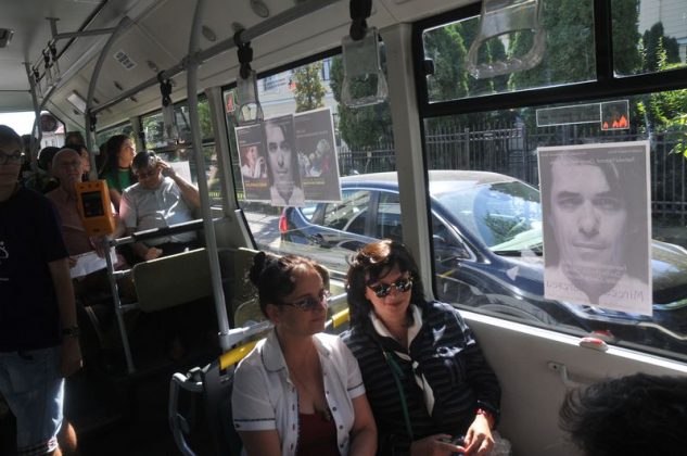Astăzi, un autobuz al Transport Public, de pe Traseul 18, transportă gratuit toţi băcăuanii care au la dumnealor o carte scrisă de George Bacovia, este cadoul nostru de ziua poetului. Până acum, sunt deja la a doua cursă, au fost mulţi care mi-au arătat cărţile. Mă bucur când spun «mulţumesc» şi sper că până diseară vor mai fi călători cu «Bacovia» la ei.