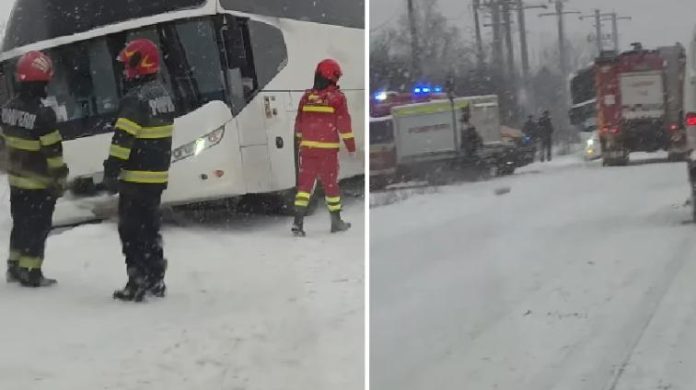 Un autocar în care se aflau 26 de turiști din Republica Moldova a derapat, joi, pe strada Industriilor din municipiul Onești, pe fondul ninsorii abundente și al condițiilor meteo nefavorabile.