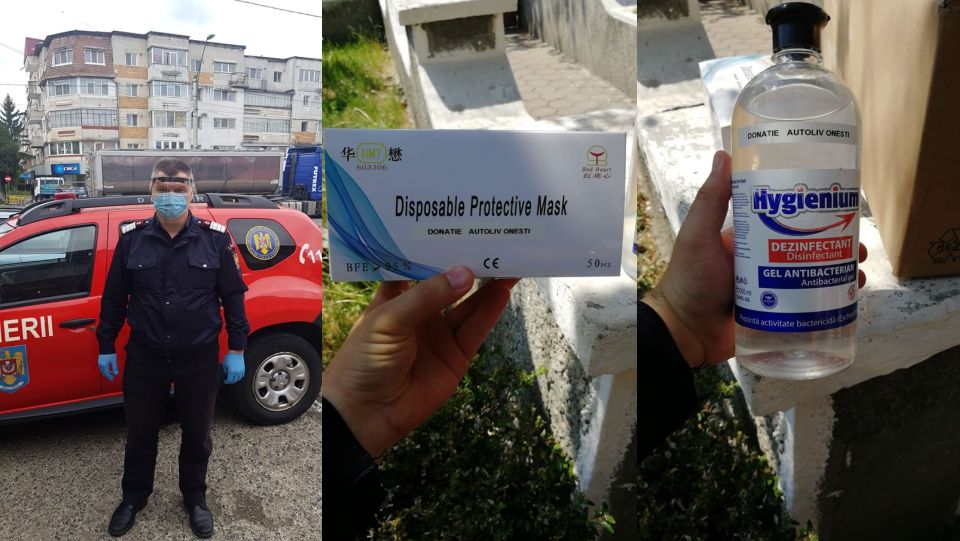 Reprezentanții firmei Autoliv din Onești au donat echipamente de protecție și materiale dezinfectante pompierilor militari aflați în continuu în misiuni diverse de salvare.