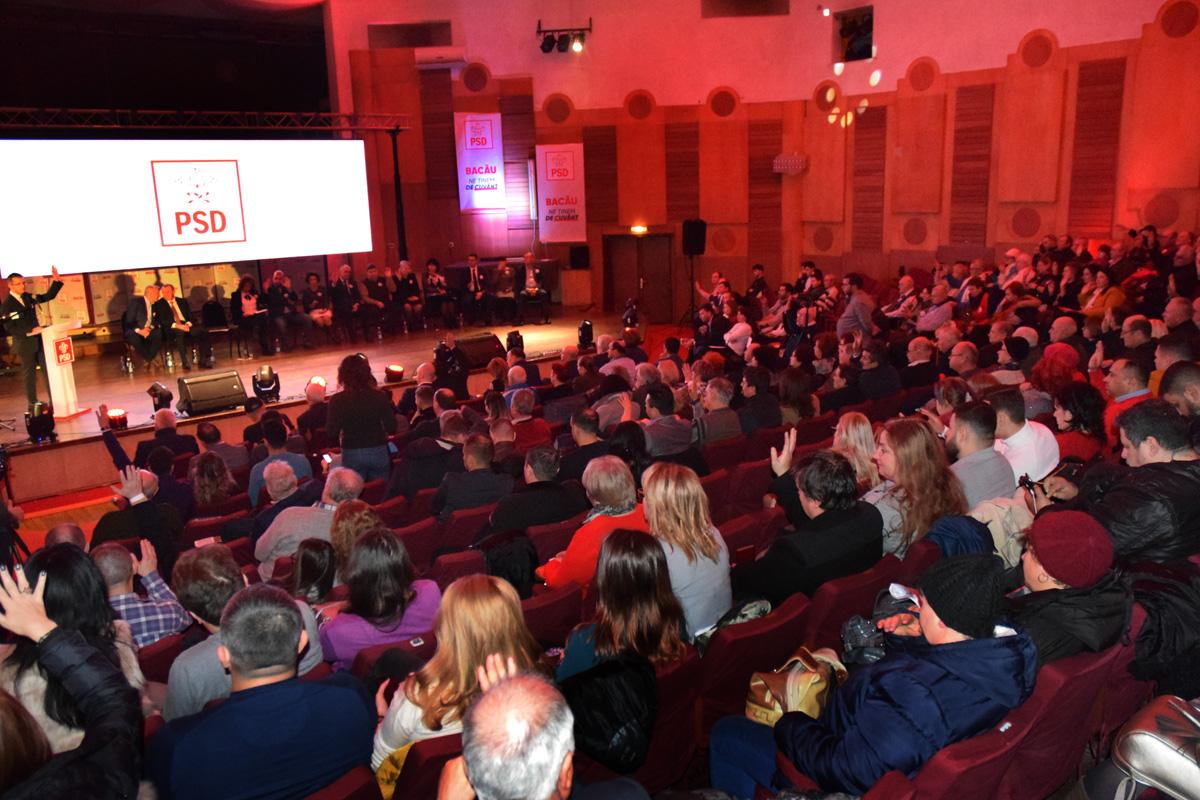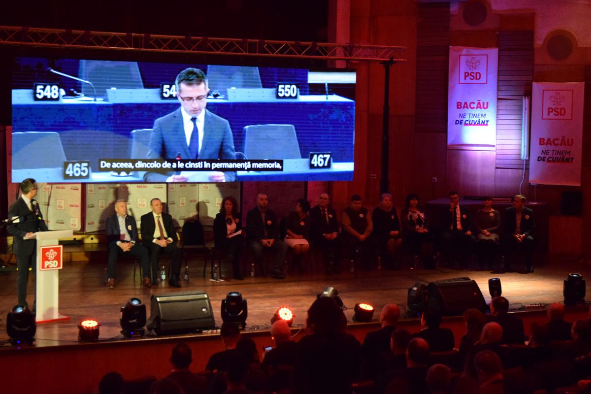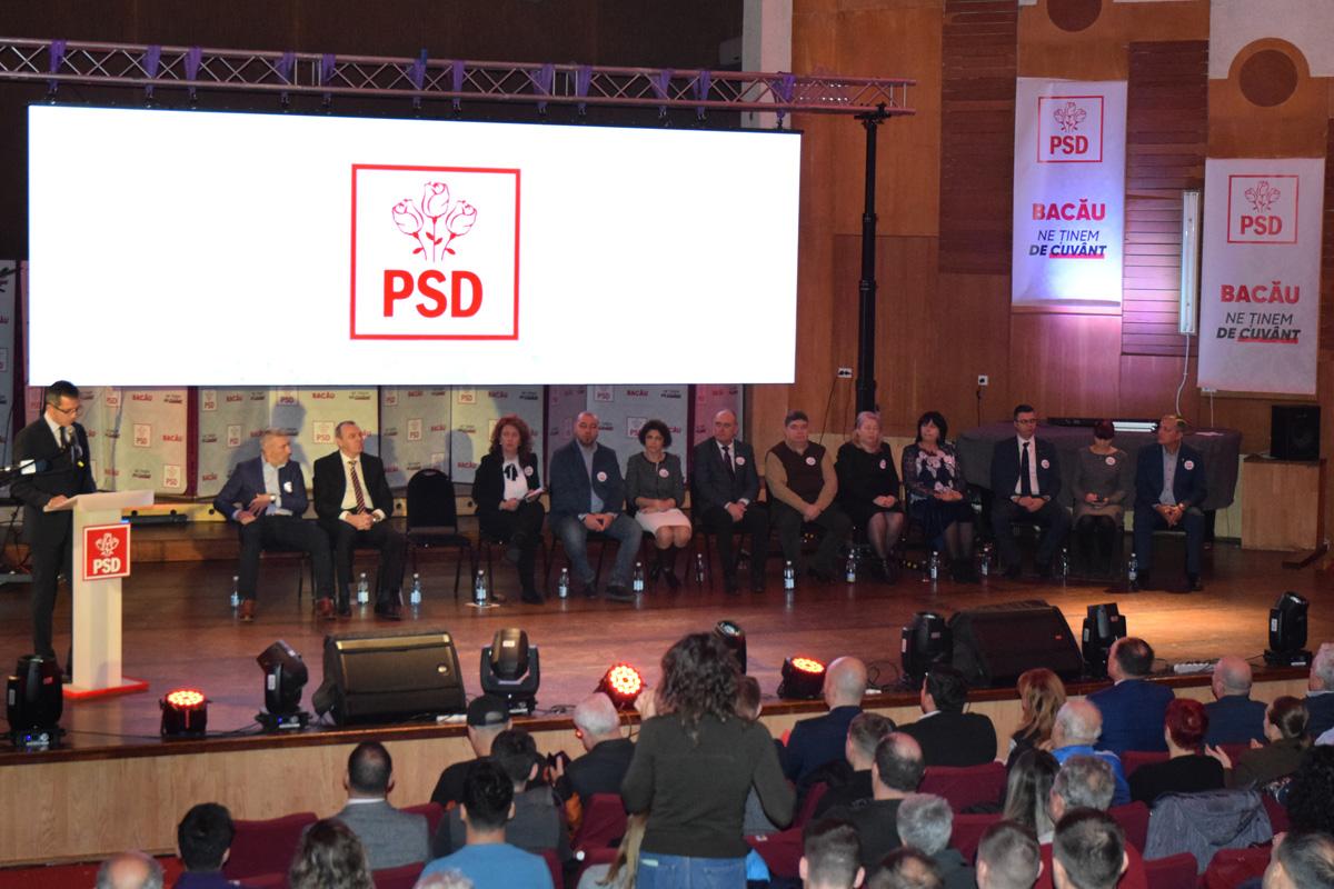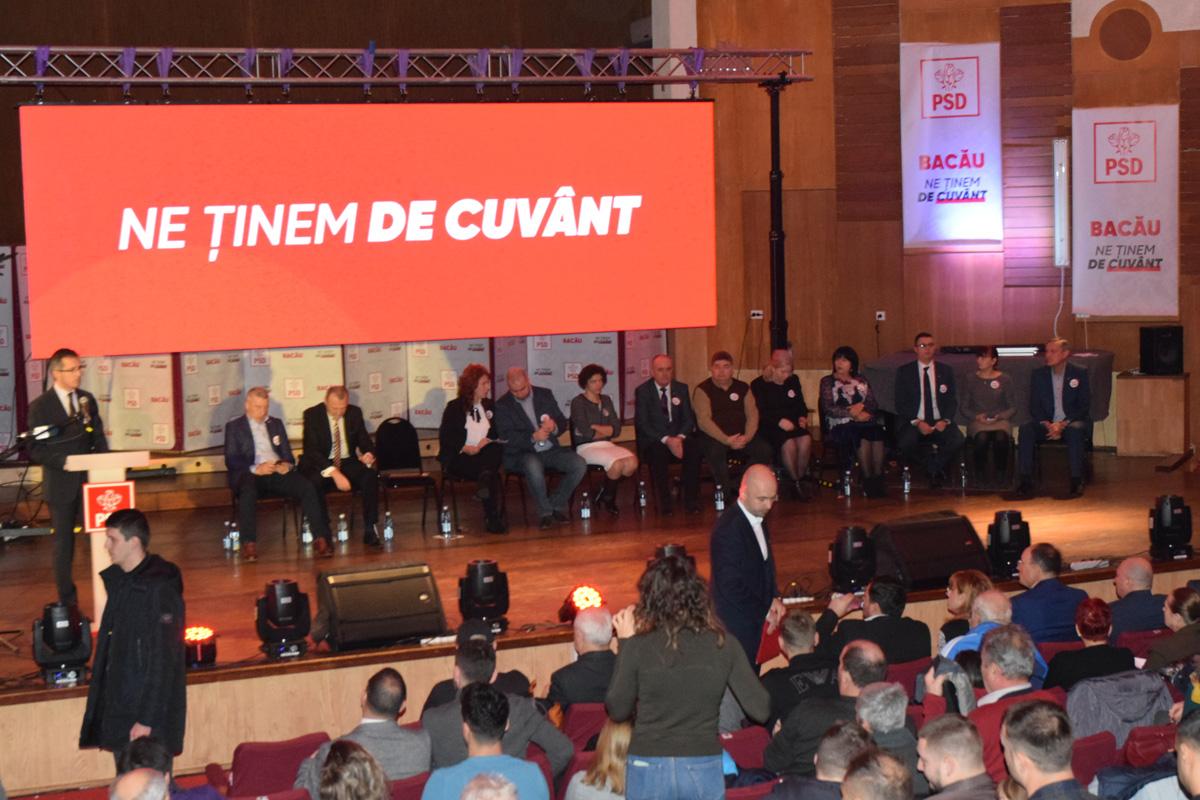 Patru sute de social-democrați s-au întâlnit, sâmbătă, în Sala Ateneu, la conferința extraordinară a Organizației Municipale Bacău, desfășurată sub deviza „Noi ne ținem de cuvânt”. Alături de deputatul Lucian Șova, președintele filialei, și de membrii acesteia, au fost prezenți europarlamentarul Dragoș Benea, președintele județenei PSD, Sorin Brașoveanu, președintele Consiliului Județean, parlamentarii de Bacău, șefi de instituții și consilieri județeni. După intonarea imnului de stat, la propunerea lui Dragoș Benea, s-a ținut un moment de reculegere în memoria eroilor Revoluției.