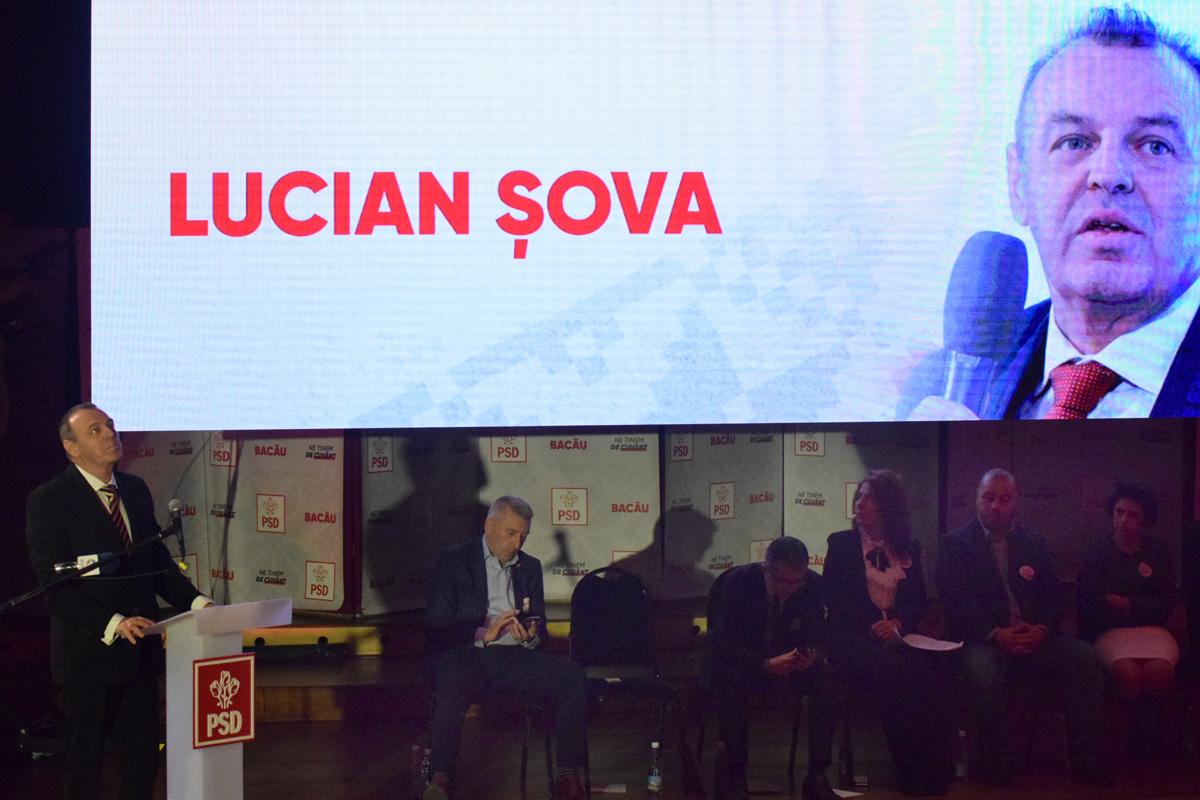 Deputatul Lucian Șova, președintele organizației municipale PSD Bacău, a reamintit care sunt obiectivele realizate sau demarate la Spitalul Județean de Urgență – Unitatea de Primiri Urgențe (UPU) a Secției de Pediatrie, extinderea Pediatriei, modernizarea Radioterapiei, extinderea UPU adulți și heliportul – și pe cele care vizează infrastructura rutieră. Toate investițiile sunt „expresia viziunii și a seriozității noastre”, a determinării și hărniciei, a spus ex-ministrul Transporturilor.