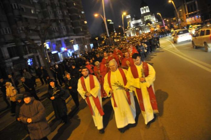 După Sfânta Liturghie, pe străzile orașului tinerii au meditat cele 14 stațiuni ale Căii Sfintei Cruci(Via crucis) nutrind speranța că după zilele întunecate ale pătimirii și morții Domnului, va apărea lumina și strălucirea iubitului Prieten și Învățător, Isus.