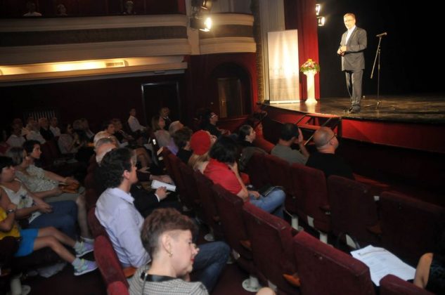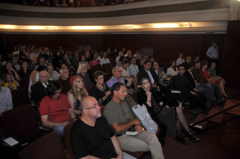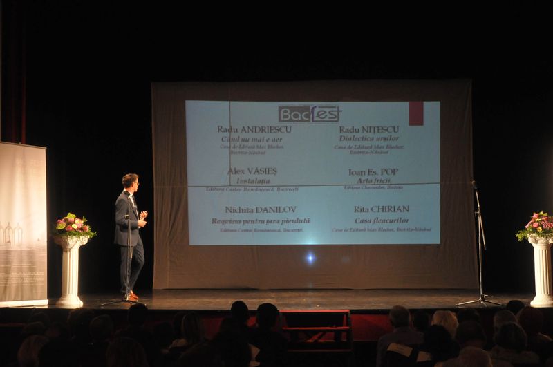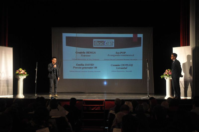 În cocheta sală a Teatrului Municipal „Bacovia” au luat loc în loje şi în sală scriitori importanţi, cei mai importanţi din România, critici şi istorici literari, oficialităţi locale. Tineri, foarte mulţi tineri, tot suntem Capitală Tineretului.