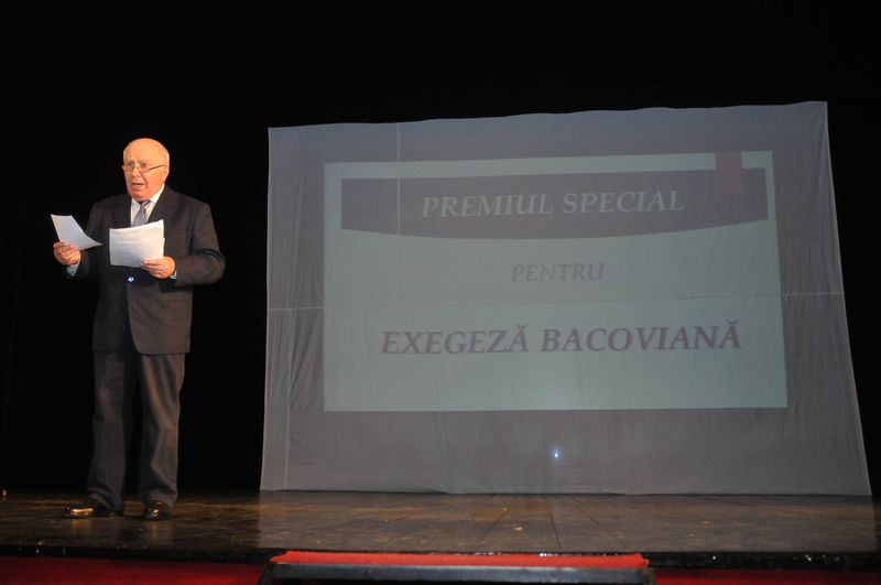 Premiul pentru Exegeză Bacoviană: Constantin Călin, profesor, critic literar, redactor al Revistei Ateneu, opera care l-a consacrat definitiv în istoria literaturii române sunt cele două volume „Dosarul Bacovia”. Un foarte frumos şi consistent Laudaţio a fost prezentat de criticul Radu Vancu.
