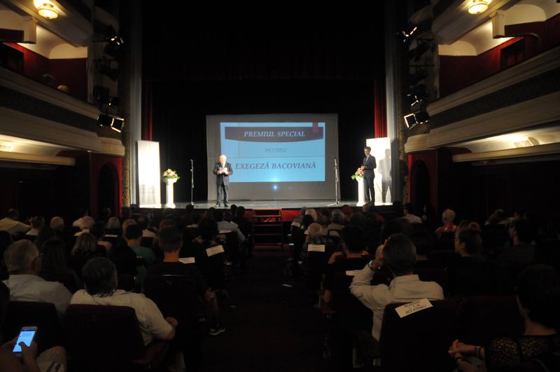15 septembrie 2017. Această zi, a patra din calendarul „Festivalului Naţional „George Bacovia”, va rămâne în analele manifestărilor dedicate poetului George Bacovia, aşa cum mereu amintim de zilele faste ale lunii septembrie, din anul 1971. Festivalul bacovian creşte în calitate şi consistenţă de la o zi la alta. Nu voi menţine suspansul, cum se obişnuieşte de regulă la aceste evenimente, şi voi spune, înainte de toate, că, în sfârşit, în Bacău s-a instituit şi se va acorda Premiul Naţional „George Bacovia”, aşa cum se întâmplă la Botoşani, unde, în fiecare an, se acordă Premiul Naţional pentru Poezie „Mihai Eminescu”. Ideea nu este nouă, a trebuit ca o mare poetă, Ileana Mălăncioiu, premiată de Revista ATENEU în 2016, să sugereze, să propună autorităţilor locale, în semn de respect şi preţuire a marelui poet băcăuan, instituirea acestui premiu. Nu a trecut decât un an şi, la festivitatea de acordare a Premiilor Festivalului Naţional „George Bacovia”, care a avut loc la Teatrul Municipal „Bacovia”, directorul festivalului, Adrian Jicu, a făcut anunţul oficial: