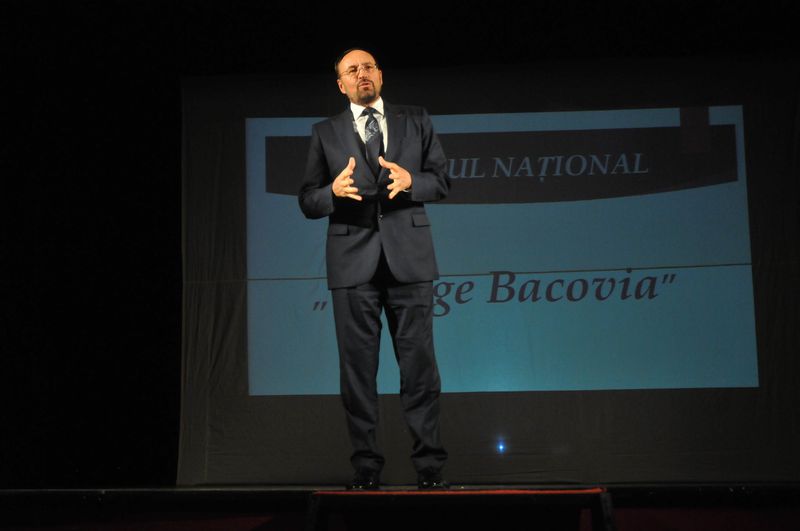 Un mesaj emoţionant, cald, a fost adresat invitaţilor, participanţilor şi premianţilor de Sorin Braşoveanu, preşedinte al Consiliului Judeţean, care a felicitat organizatorii, colaboratorii, voluntarii pentru reuşita acestei ediţii a Festivalului Naţional „George Bacovia”, o ediţie cu foarte multe activităţi, cu multe premiere şi noutăţi, ceea ce va ridica prestigiul festivalului la nivel naţional şi internaţional. De pe scena festivalului, Geo Popa, secretar de Stat, a transmis, de asemenea, mesajul de felicitare din partea Ministerului Culturii.