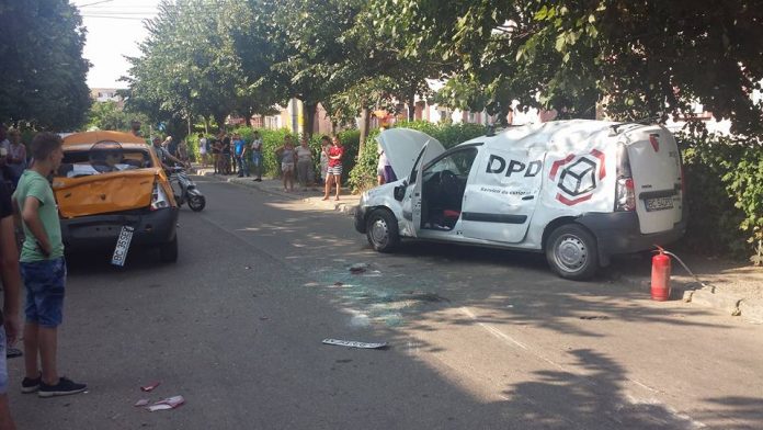 În urma impactului autoutilitara a fost proiectată într-un autoturism, ce se afla oprit pe strada Henri Coandă.