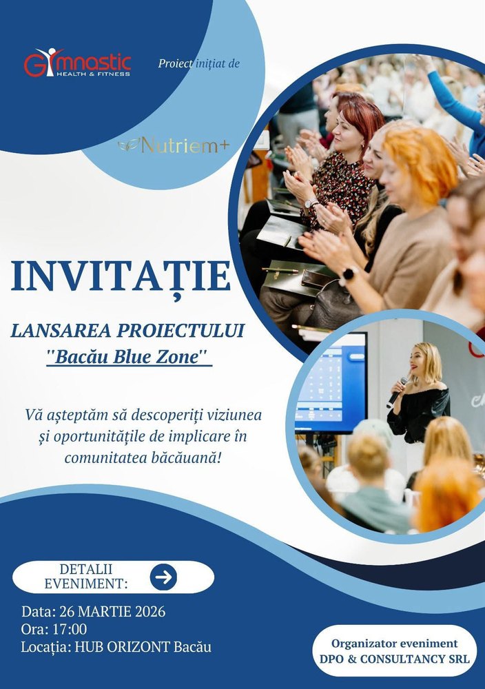 Evenimentul de lansare a proiectului „’Bacău Blue Zone’’, o inițiativă locală dedicată promovării sănătății și educației pentru sănătate în comunitate, va avea loc joi, 26 martie, de la ora 17.00 la Hub Orizont.