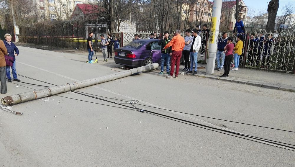 În această după-amiază, un tânăr de 21 de ani din comuna Traian, în timp ce conducea un autoturism BMW, pe strada Aviatorilor din municipiul Bacău, a pierdut controlul asupra volanului şi s-a izbit de un stâlp din beton, pe care l-a doborât.