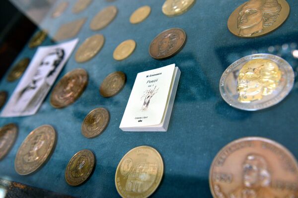 Mai bine 1.200 de medalii având chipul lui Mihai Eminescu încrustat la vârste diferite, în sute de ipostaze şi valoroase stilizări artistice, între care şi un unicat creat de marele sculptor Ion Irimescu şi medalii din metale preţioase lucrate în toată Europa, reunite într-un inedit şi unic „arsenal” cultural, se află expuse, pe panoplii, nu într-un muzeu cunoscut, ci într-un apartament modest de pe strada Energiei din municipiul Bacău.