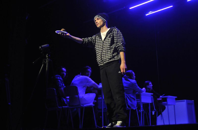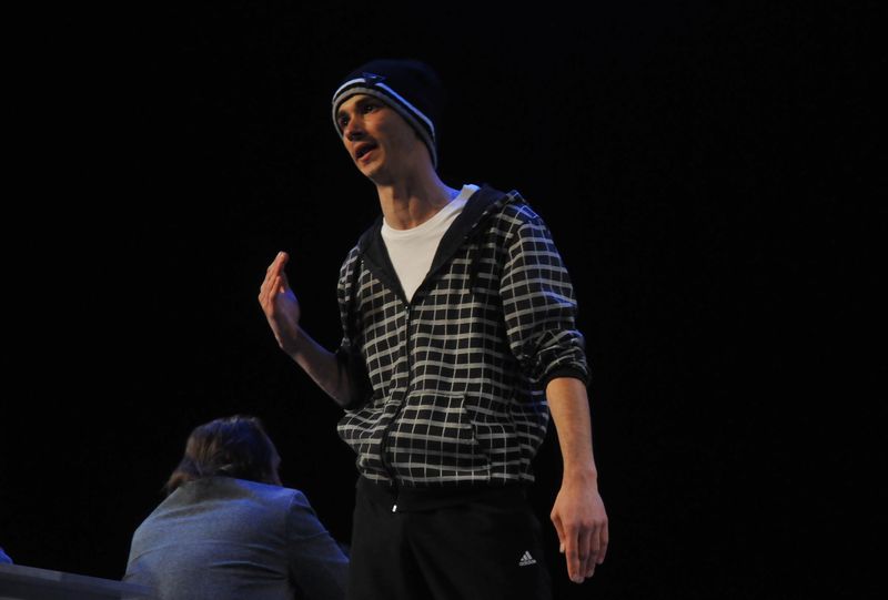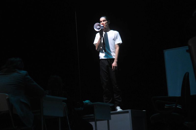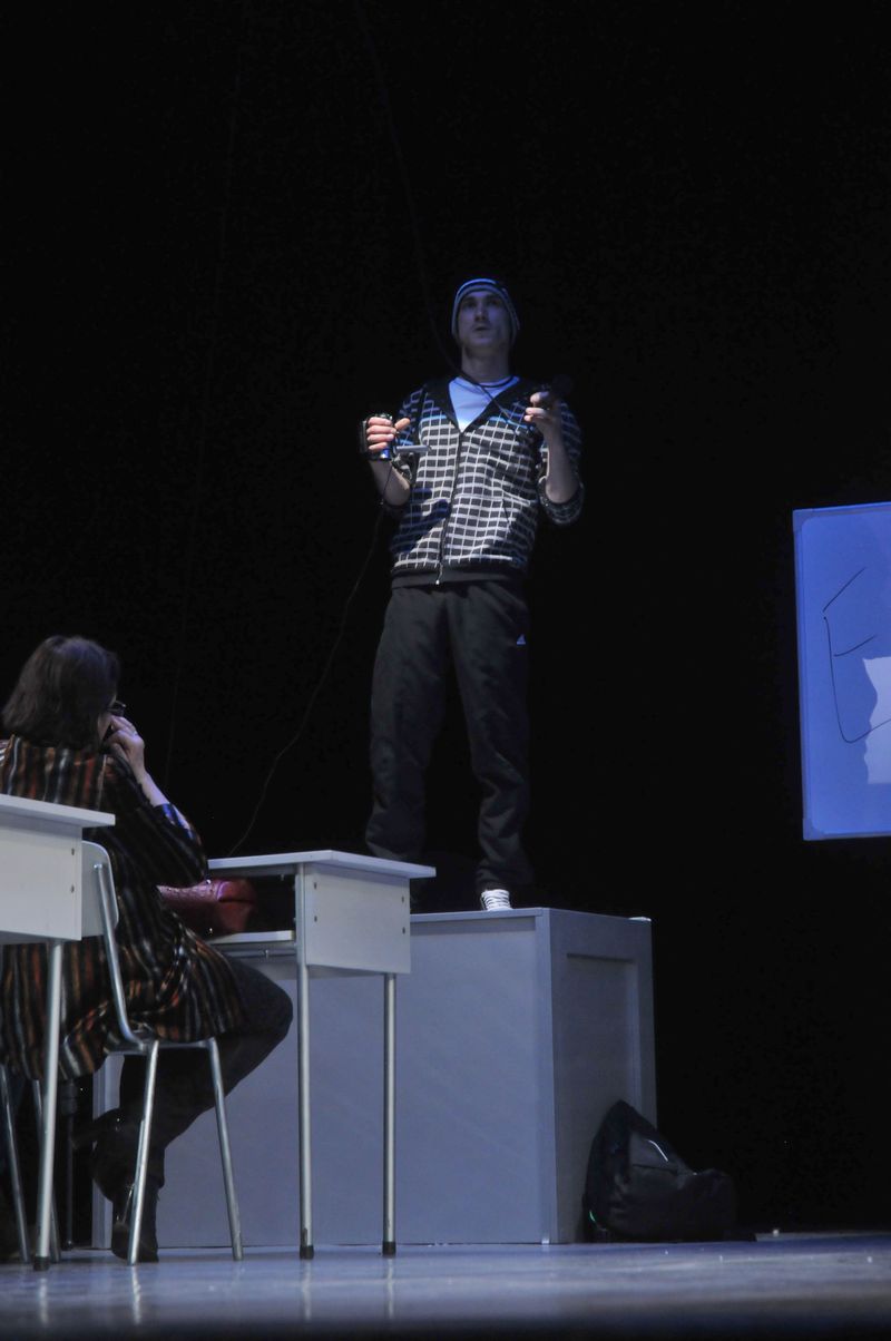Să mai spunem că, spre deosebire de ediţiile precedente, în 2017 se va acorda un singur premiu, în valoare de 2000 de euro, la care se adaugă Trofeul Fest Monodrame. Tinerii spectatori vor acorda Premiul “Ştefan Iordache”, iar actorii teatrului băcăuan Premiul “Actori pentru Actor”. Cu aceste fiind zise, cortina s-a ridicat pentru primul concurrent, Ali Deac, de la Teatrul “Radu Stanca” din Sibiu, cu monodrama “20 septembrie”, după Lars Noren, în regia lui Eugen Jebeleanu, o poveste adevărată, o poveste despre tineri, despre constrângerile societăţii de consum. Piesa este o dramă a unui elev din ultima clasă de liceu, care nu reuşeşete să ţină pasul, să se adapteze normelor rigide din şcoală, din societate, tânjind după libertate, o libertate aproape absolută, piesa fiind şi un manifest strigat, uneori cu accente dincolo de limitele normalului, pe alocuri cu expresii scatologice, împotriva barierelor şi nedreptăţilor pe care eroul le identifică peste tot. Finalul este de un dramatism extrem, personajul apelează la gestul limită, îşi trage un glonte în cap.