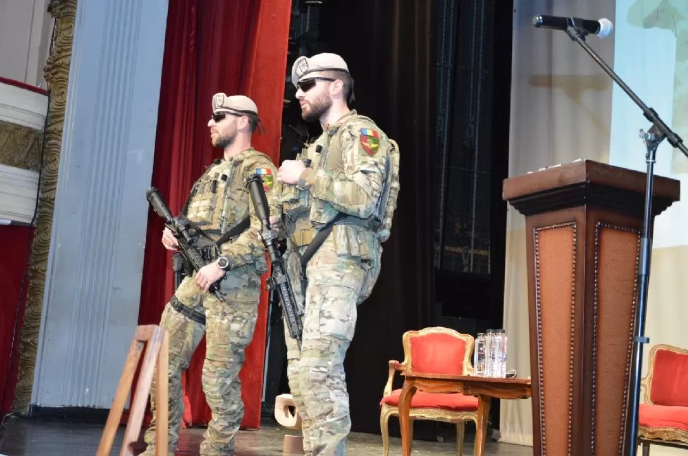 Dezbaterea organizată de municipalitatea băcăuană pe tema violenței din școli, de la Teatrul Bacovia, a beneficiat de prezența unor militari cu arme automate.