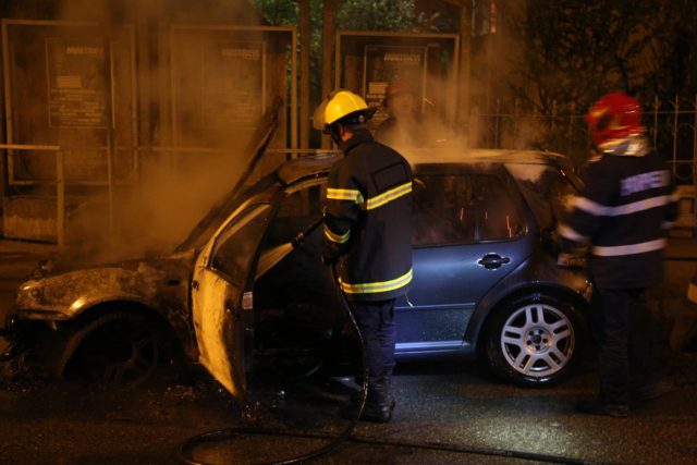 Un autoturism a luat foc, azi noapte, pe strada Nicu Enea din Bacău. Incendiul a izbucnit în jurul orei 23.20.
