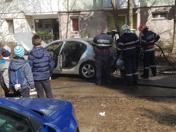 Bacău: Un autoturism BMW a luat foc pe strada Aviatorilor