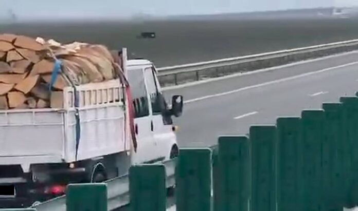 Băcăuan filmat circulând cu camion cu lemne pe contrasens pe Autostrada A7 – VIDEO