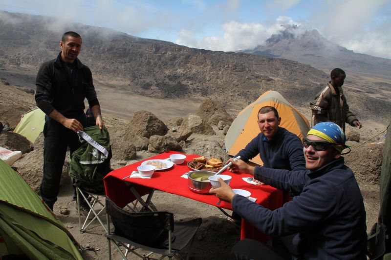 A urmat o urcare cu un grad sporit de dificultate insa seara i-a prins la Karanga Valley (4.200m) intr-o priveliste de vis – in stânga soarele apunea dupa Muntele Meru, iar in dreapta se inalta semet Muntele Kilimanjaro – tinta lor.
