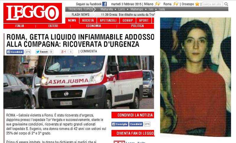 Peste Clara Saran, mama fetei incendiate, nenorocirile au venit una dupa alta. Cea mai groaznica lovitura este, insa, moartea fiicei sale: “Am primit un telefon dupa sarbatori ca e internata in Spitalul de Arsi din Roma. Cel cu care traia era un tip violent si bea tot ce câstiga. Acum e anchetat.” Carmen Saran, 42 de ani, se afla de 5 ani in Italia, pentru a câstiga bani ingrijind o batrâna.