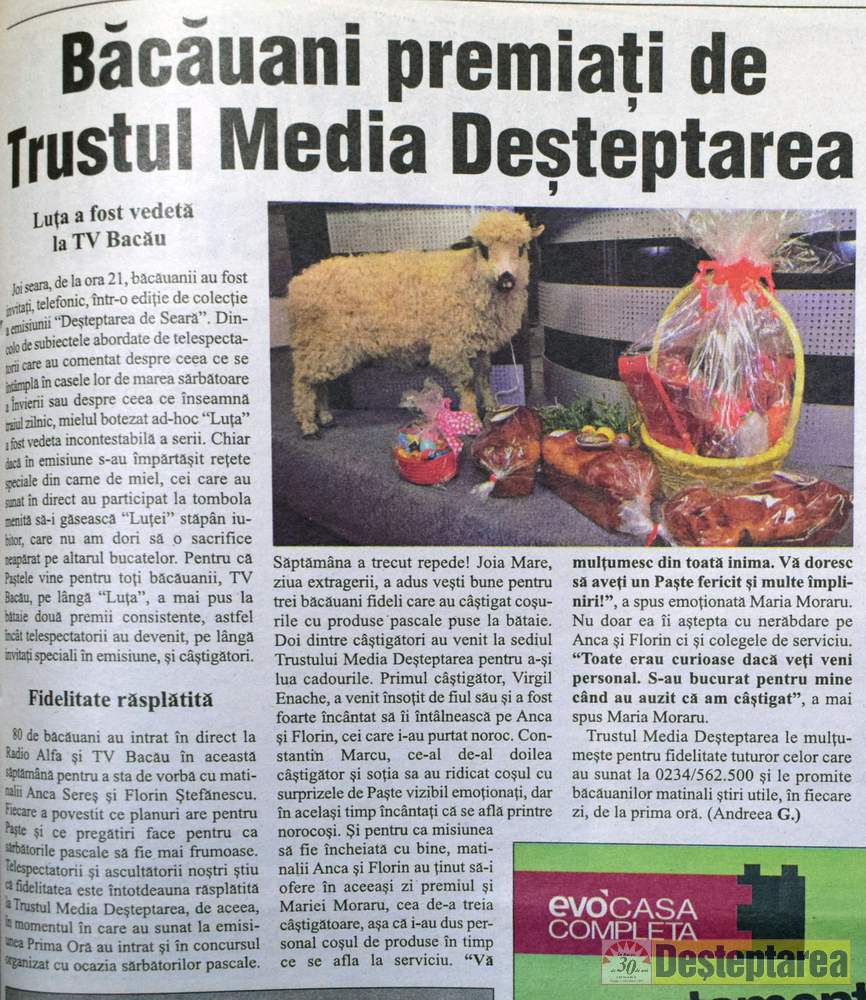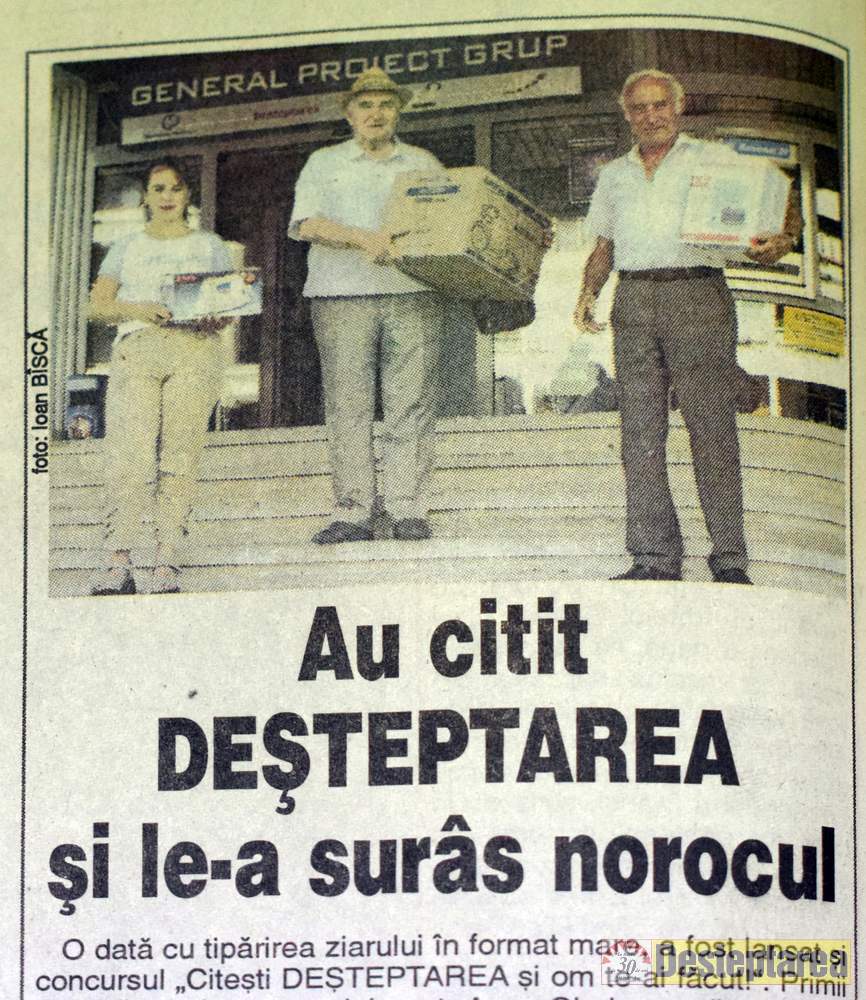 Am dorit doar să răsplătim (și hazardul a hotărât) o parte din efortul cititorilor noștri care ne cumpără ziarul în fiecare zi și pe care încercăm să nu-i dezămăgim. Rămânem mereu împreună cu dumneavoastră. Redacția.” Deșteptarea!!!