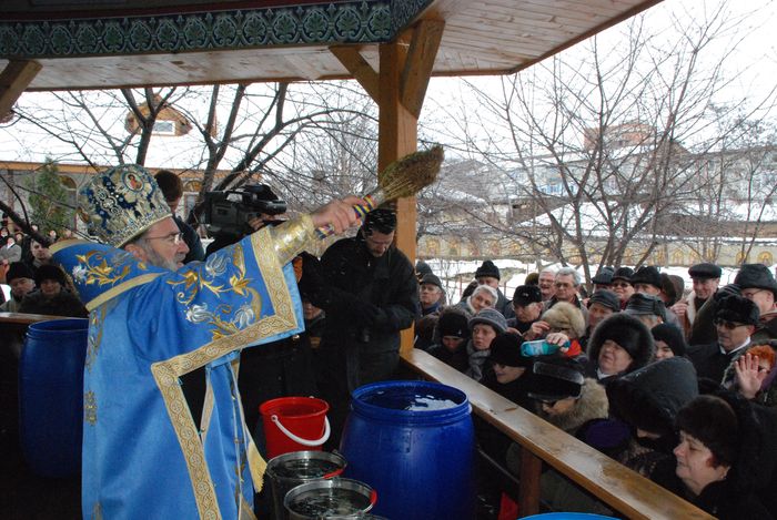 Duminica, credinciosii ortodocsi si romano-catoloci au mers in numar mare la biserici unde au participat la slujba oficiata de Sarbatoarea Botezulului Domnului. La Biserica Precista, sute de credinciosi au indurat zeci de minute frigul pentru a ajunge la butoaiele cu apa sfintita. Un sobor de preoti, in frunte cu PS Episcop Ioachim Bacauanul, a oficiat Sfânta Liturghie, urmata de slujba Aghezmei Mari, aceasta din urma fiind tinuta, ca si in anii trecuti, in foisorul din curtea bisericii. Aceasta a fost si prima slujba arhiereasca din acest an. La final, oamenii au plecat acasa cu apa sfintita, despre care se spune ca are puteri miraculoase. „Am luat pentru mine si familia mea. O sa bem dimineata, asa cum spune biserica, dar o sa stropim si locuinta ca sa fim ocortiti de boli si lucruri rele”, spune Maria Iacobut. Numai la aceasta biserica a fost oferita cantitatea de 3.000 de litri de apa sfintita. Si la Catedrala Catolica „Ss. Apostoli Petru si Paul” butoaiele cu agheazma au fost asezate in fata bisericii, iar credinciosii si-au luat atât cât au avut nevoie, dupa ce au participat la slujba.