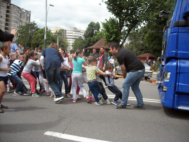 Savuroasa a fost incercarea reusita a bacauanilor de a urni din loc un imens camion MAN, demonstrând astfel ca, in Bacau, exista o comunitate care poate face lucruri impreuna, poate schimba lucruri. La final, mai retinem ca, in Parcul Cancicov, militarii bacauani le-au aratat micutilor tehnica de lupta folosita la antrenamente, ziua incheindu-se cu un frumos concert Neghinita si dansuri sportive in fata Prefecturii.