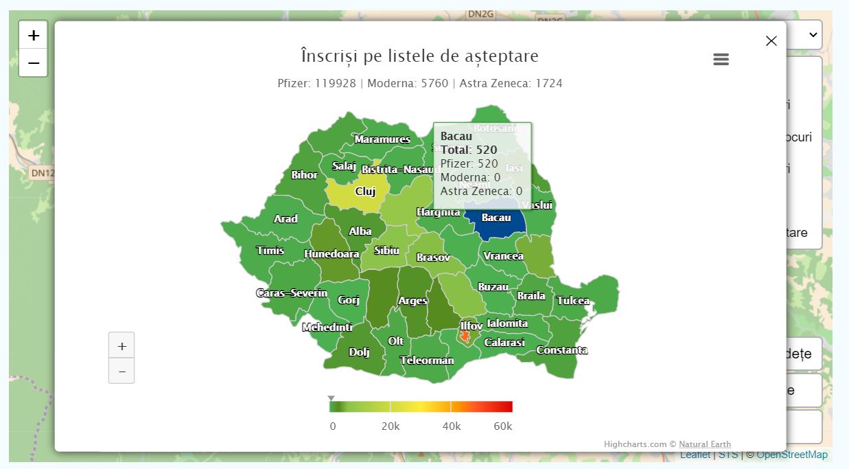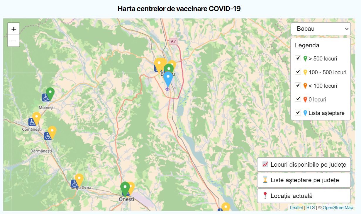 La Moinești sunt 863 de locuri (Pfizer), la Comănești sunt 393 de locuri (Moderna), la Dărmănesti (Pfizer) sunt 459 de locuri, la Tg Ocna (Moderna) sunt 155 de locuri și nici o persoană pe listele de așteptare.