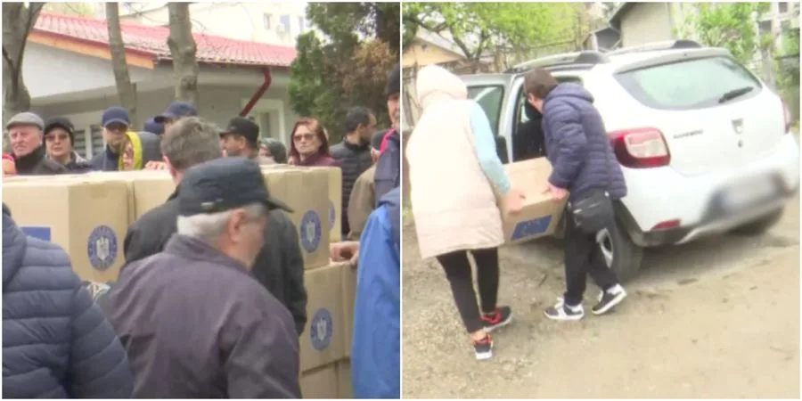 Deși unii dintre beneficiari nu se pot deplasa și nu au aparținători, aceștia au venit la distribuirea alimentelor cu ultimele puteri pentru a primi o cutie, în timp ce alții și-au încărcat bolizii de lux cu pachetele de alimente.