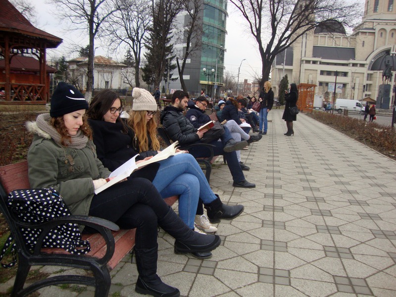 Mai bine de 50 de bacauani s-au reunit sâmbata, 27 februarie, de la ora 13.00, in Parcul Trandafirilor, la o actiune intitulata “Da-ti intâlnire cu o carte”, proiect initiat de Marius Apostol, student in anul III la Facultatea de Stiinte Economice din Universitatea “Vasile Alecsandri” din Bacau si sustinut de o serie profesori din colegiile “Ion Ghica” si “Gheorghe Vranceanu”, dar si câteva asocialtii si organizatii de tineret.