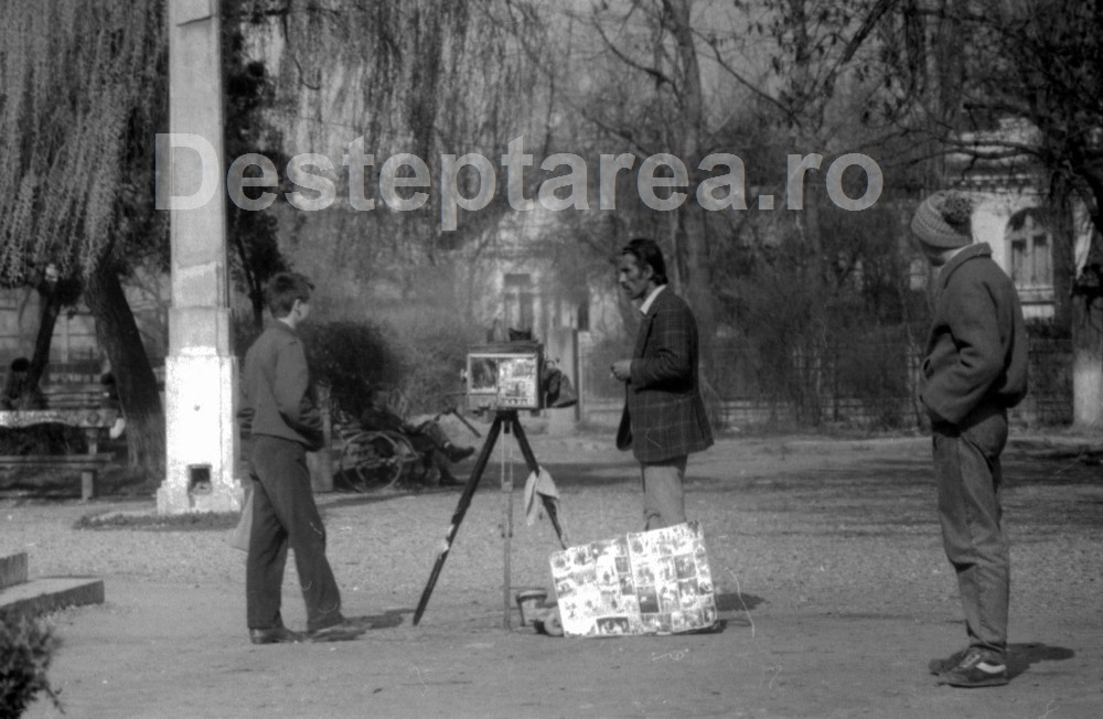 Negativele era din plăci de sticlă, acoperite artizanal cu emulsie fotosensibilă, ambalate în hârtie neagră. Când te simțea pregătit, se contopea una cu măgăoaia ciclopică, ca într-un joc al caprei în cinci picioare. Trepiedul preluându-i centrul de greutate. Rostea rar: un, doi, trei… moment din care înțepeneai. Ca o incantație mistică în fața unui vrăjitor care-ți fură sufletul și-l ascunde în cutia neagră, auzeai un „Nu mișca! Nu respira!” abia șoptit. Stană rămâneai. Scotea rapid capacul de pe obiectiv și-l rotea în lateral, ca un metronom, măsurând astfel expunerea, în funcție de lumină. Pulsul la loc era mai brutal. Neștiind prea bine șmecheria, mulți uitau în continuare să respire. Toate acele clădiri au fost demolate, multe și prin munca tinerilor din brigăzile patriotice. În locul lor s-a ridicat, falnic, blocul de la Select.