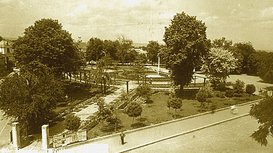 Străduța era unde avea să se ridice blocul dinspre Parcul Trandafirilor, cu restaurantul și terasa lui Petrescu. În spate era Teatrul de vară, cu cinema în aer liber, cam în dreptul bisericii Sf. Ioan. Parcul era mult mai mare. Bustul maiorului Constantin Ene, eroul băcăuan căzut la Rahova pe 7 noiembrie 1877, avea să fie dezvelit abia după un secol de la Războiul de Independență. Dar fântâna arteziană exista. Pe unde este Statuia lui Ștefan cel Mare era WC-ul public.