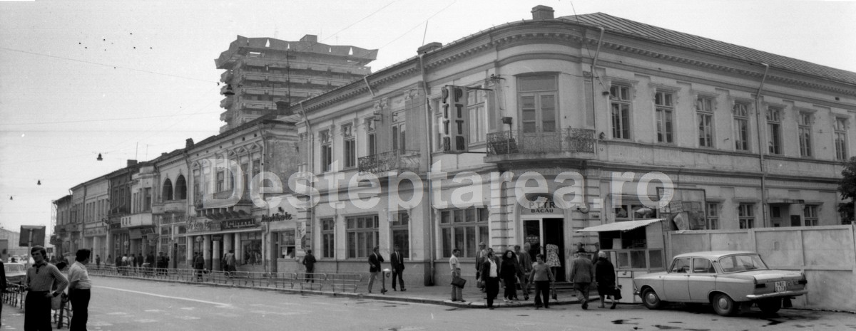 „La telefoane, în colț, era oră programată la intrare. Noi, iarna, după hoinăreală, abia așteptam să ajungem aici. Aveau un calorifer pe hol și era foarte cald. Din hol dădea o ușă către cabinele telefonice. Ne încălzeam puțin și o zbugheam iar afară.” După Poștă, pe dreapta către centru era o frizerie și chioșcul cu ziare. Apoi Restaurantul „Consum”, o farmacie și o cofetărie. Abia după aceea venea Cinematograful Tineretului și strada Ion Păun Pinciu care se prelungește în Str. Șoimului, care începe unde e acum Farmacia Nr 1. apoi Macul Roșu, Librăria și cofetăria Rîndunica, cu mica ei grădiniță.