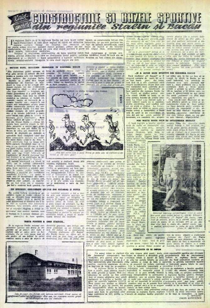 Doi ziariști au luat la pas regiunile Stalin (Brașov) și Bacău, descoperind o serie de probleme în construcția stadioanelor sau a sălilor de sport. Iată ce s-a scris despre Stadionul 23 August din Bacău: