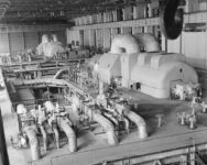 Dezvoltarea accelerată a industriei, începînd cu anii 1950, a generat implicit o cerere tot mai mare de energie electrică și termică. Prima investiție de anvergură din județul Bacău, a fost făcută în termocentrala de la Comănești, în 1954. Avea o putere instalată de 24 MW. A urmat, în 1956, centrala electrică de termoficare de la Borzești, care ajunsese în 1969, la 635 MW.