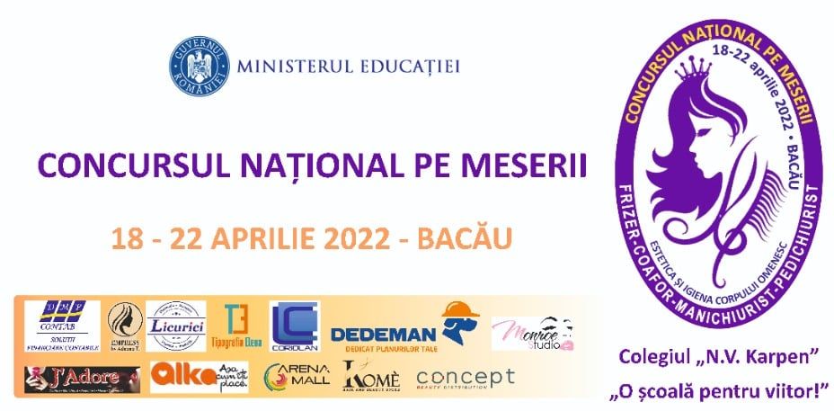 În perioada 17-22 aprilie 2022, Bacăul organizează Concursul Național pe Meserii – Domeniul Estetica și Igiena Corpului Omenesc, calificarea Frizer-coafor-manichiurist-pedichiurist. Competiția se va desfășura la Colegiul „N.V. Karpen”, iar programul complet evenimentului este următorul: