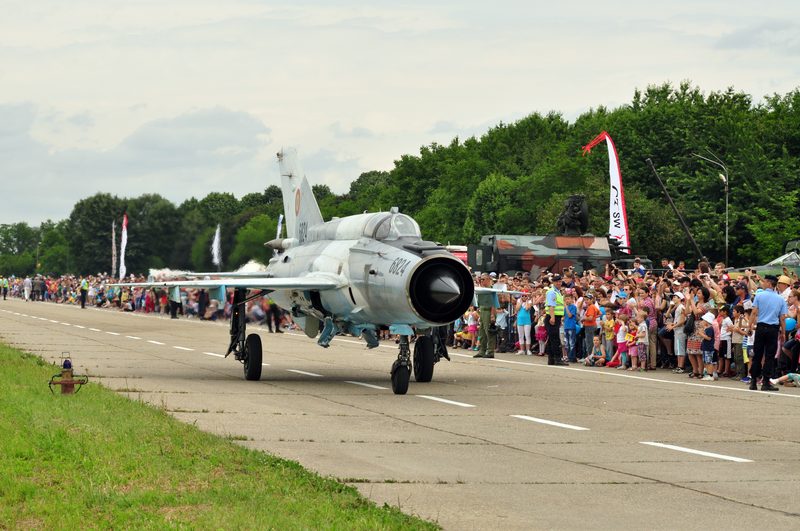Pe platoul de lânga pista a fost amenajata o expozitie de tehnica militara in care bacauanii au putut admira aviaonele MiG21, elicoptere, masini radio si artilerie anti-aeriana. Copiii dar si adultii s-au catarat pe avioane sa se fotografieze, sub atenta supraveghere a cadrelor militare. O scurta ceremonie religioasa a dat startul evenimentelor.