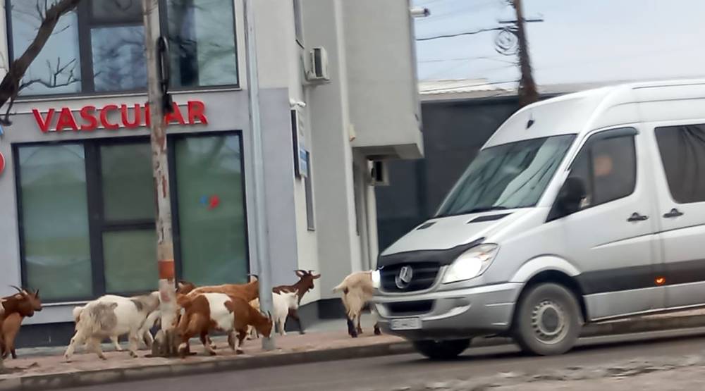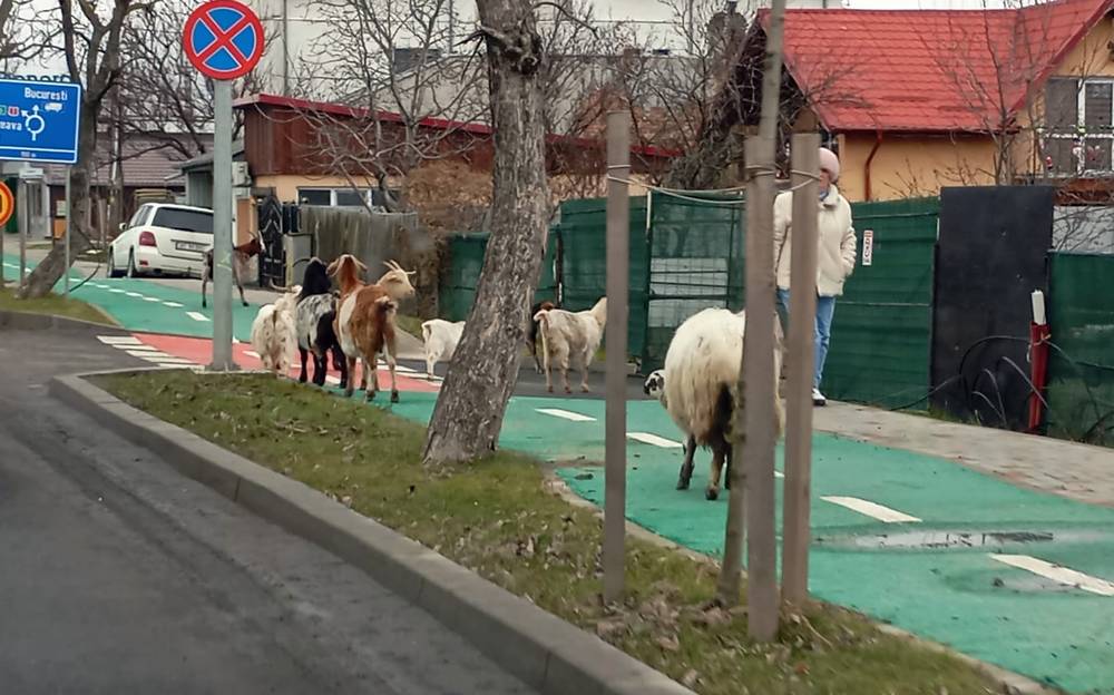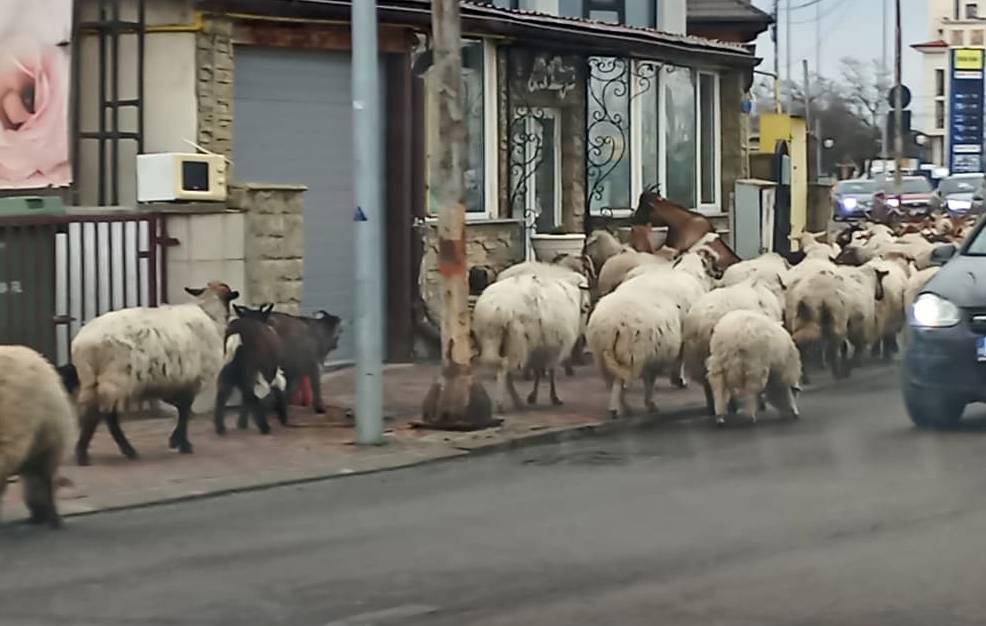 Pe Bulevardul Unirii din Bacău, imediat după Podul Șerbănești, am observat în ultimele zile un fenomen mai puțin obișnuit: o turmă de capre și oi are se plimbă nestingherite pe drum.
