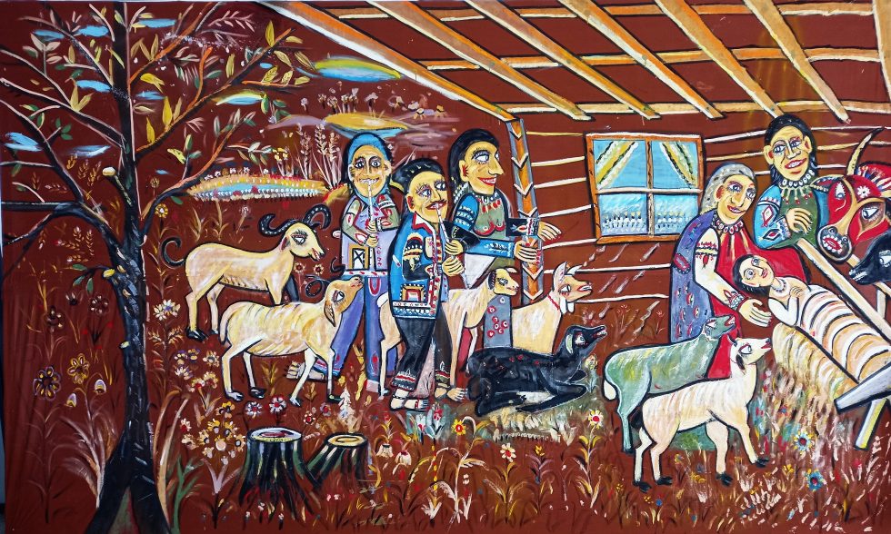 Este o parte dintr-o expoziţie închinată sărbătorilor de iarnă, sub genericul „Arta naivă «zboară» în toată lumea”. Ioan Măric (membru al filialei Iaşi a U.A.P.R.) s-a iniţiat acum 44 de ani în tematica tabloului premiat. În 1977, a realizat o lucrare oarecum similară: pe unul dintre pereţii interiori ai sălii de festivităţi a Liceului din Comăneşti, a pictat scene însumând 10 x 6 m, inspirate din zona respectivă (obiceiuri şi tradiţii de mult uitate, secvenţe din minerit etc.). La 32 de ani, Bădiţa (născut în 1945) urma Şcoala de Maiștri Tehnologi în P.A.L.-P.F.L. la acel liceu.