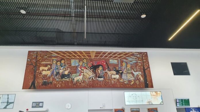 Autorul a lucrat la aceasta şase ani, iar după două decenii, a recondiționat-o şi a expus-o la Aeroportul Internațional „George Enescu” Bacău. Cine a urmărit „Caravana TVR 3” de sâmbătă, 11 decembrie (orele 17-18,30), emisiune dedicată judeţului Bacău, a putut afla de la Oana-Daniela Chelaru, managerul Aeroportului, despre succesul pictorului naiv şi a putut admira lucrarea înnobilând spaţiul unităţii.