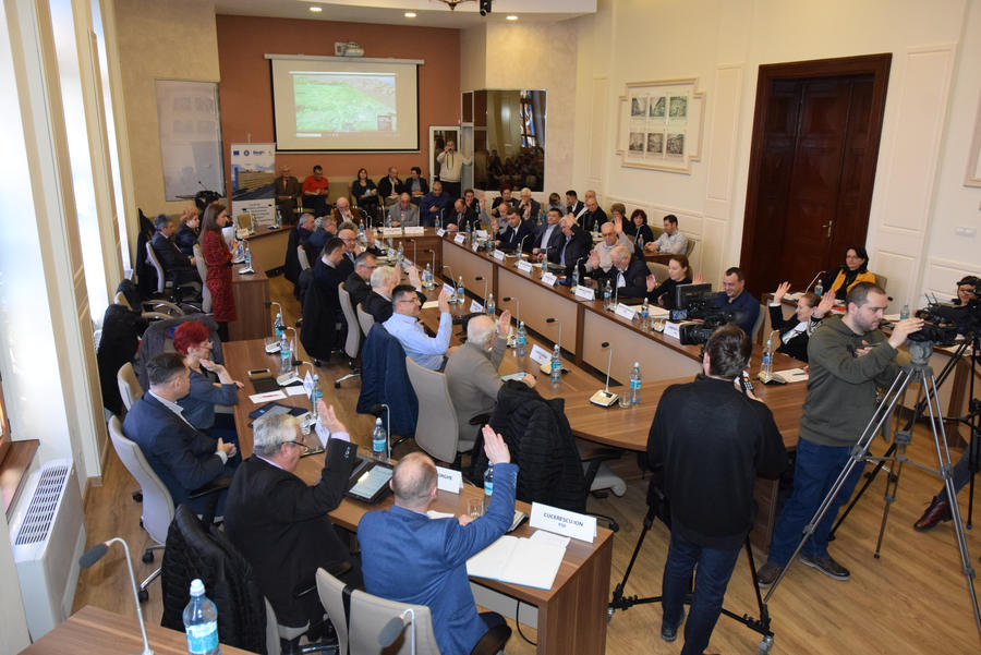 Ieri,19 februarie, a avut loc ședința extraordinară a Consiliului Județean Bacău, în care au fost supuse dezbaterii și aprobării nu mai puțin de șapte hotărâri extrem de importante pentru comunitatea județului. La ședință, alături de 33 de consilieri, au mai participat și șefii instituțiilor aflate în subordinea CJ, reprezentanții unor UAT-uri, dar și directorii spitalelor din Onești, Moinești și Buhuși.Toate punctele au trecut de votul consilierilor.